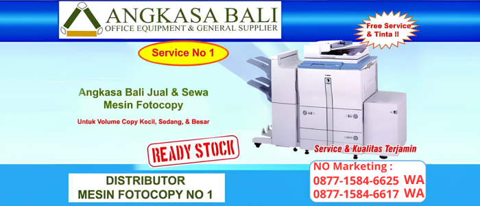 Angkasa Bali Jual dan Sewa mesin fotocopy canon dan kyocera di Bali Denpasar, Angkasa Bali Sudah Lama berkecimpung di dunia fotocopy sehingga tau komponen fotocopy mana yang memiliki problem, dengan bantuan teknisi yang tepat Angkasa Bali dapat memperbaiki mesin fotocopy dengan cepat dan dengan service yang tepat. Angkasa Bali selalu siap kemanapun jika di perlukan dan kami selalu menjaga mesin kami sehingga dapat di gunakan sesuai dengan kebutuhan pelanggan. Angkasa Bali selalu menjaga konsumen dengan baik dan dengan service yang terbaik yang kami bisa berikan. Tunggu Apa lagi Beli atau sewa mesin fotocopy anda di Angkasa Bali